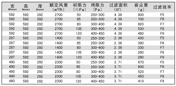 箱式中效過(guò)濾器技術(shù)參數(shù)